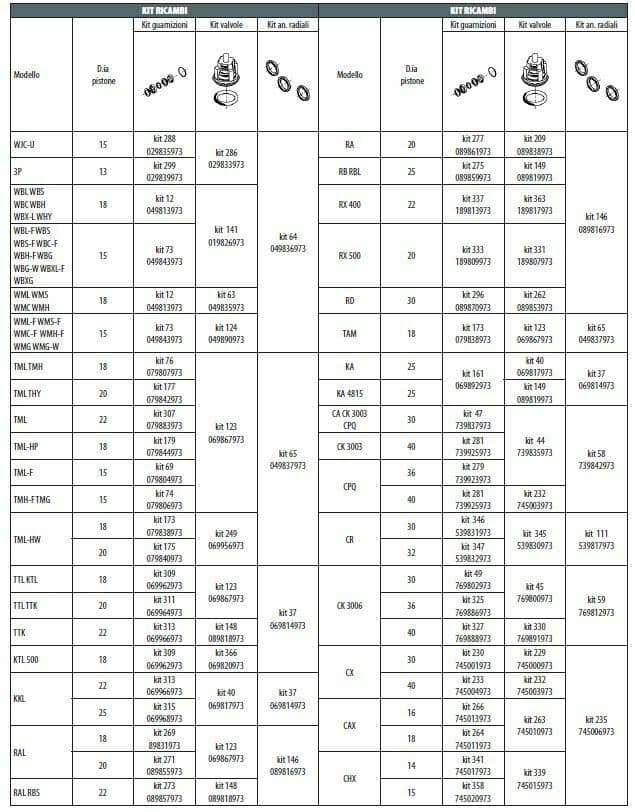 KIT 73 -Уплотнения плунжеров (для мод. F) |